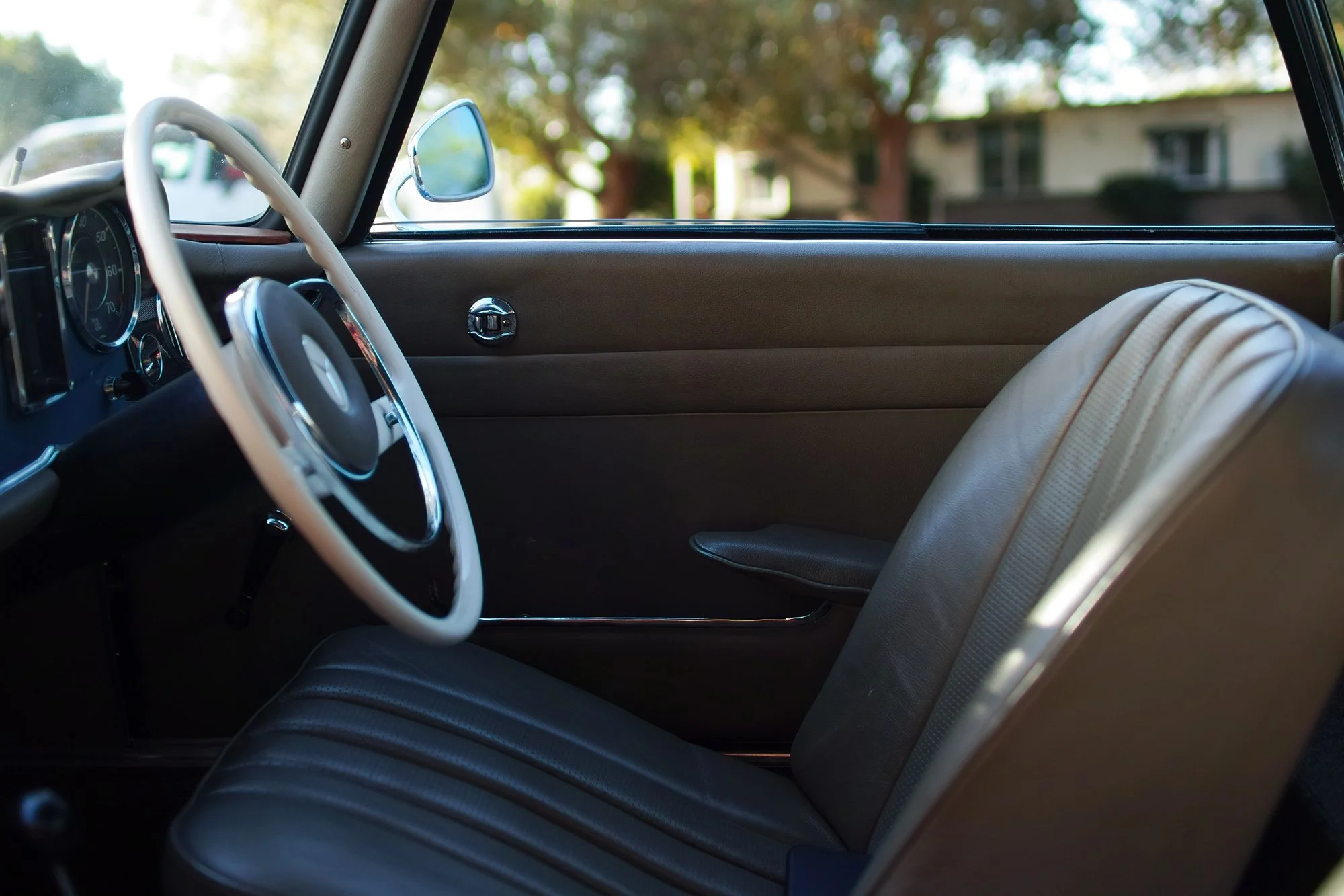 The SL’s signature design feature is its “pagoda” roof. Mercedes engineers designed the removable hardtop with a unique concave curve in it; most roofs are convex when viewed from the front or the rear. One of the reasons they did this was to add rigidity to the structure so that it could protect the occupants during a rollover crash; the other version was that the upturned roof edges allowed for taller windows and better visibility, giving the car a very light and almost delicate appearance. None of these design considerations have been lost on their current owner who has spent the best part of her life obsessing over design details.